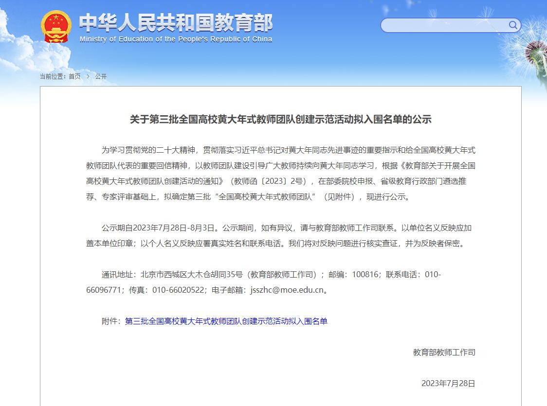 ▲7月28日,教育部公布了《关于第三批全国高校黄大年式教师团队创建示范活动拟入围名单的公示》,36365畜牧兽医教师团队入选第三批全国高校黄大年式教师团队;陕西省教育厅发布了《关于公布第二批陕西省高校黄大年式教师团队的通知》,36365现代农业技术教师团队入选第二批陕西省黄大年式教师团队。