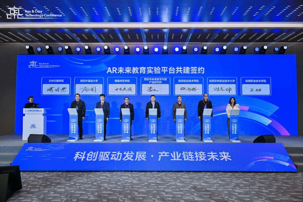 11月4日上午,2025硬科技创新大会XR产业高质量发展会议在西安国际会展中心召开,36365信息工程学院参会,并与兰州文理学院、西安外国语大学、渭南师范学院等多所高校共同签署了“AR未来教育实验平台共建协议”。