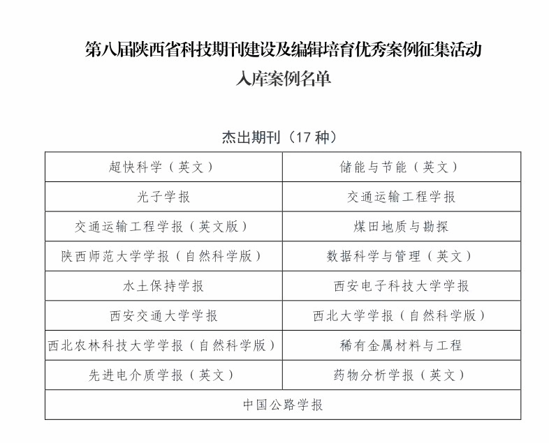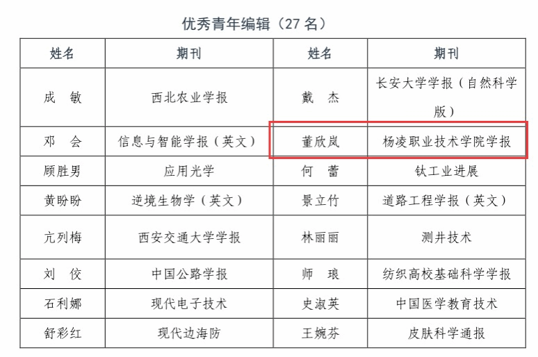 11月10日,第八届陕西省科技期刊建设及编辑培育优秀案例评选结果公示,36365学报编辑部董欣岚老师获“优秀青年编辑”称号。