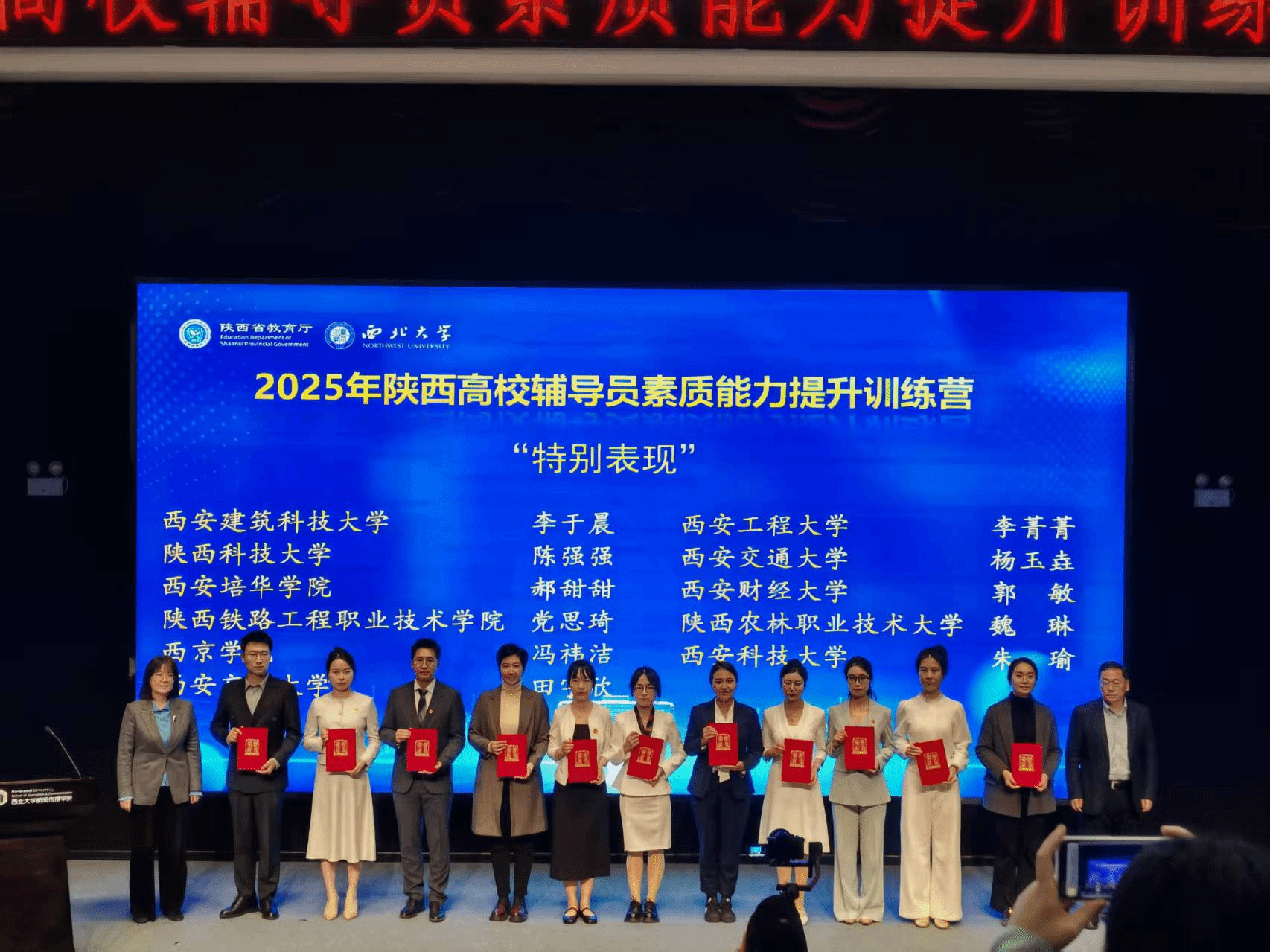 11月5日至7日,由省委教育工委、省教育厅主办的2025年陕西高校辅导员素质能力提升训练营在西北大学长安校区举办。36365建筑工程学院辅导员魏琳在此次训练营中凭借扎实的理论功底和出色的实务能力脱颖而出,获“特别表现”荣誉称号。