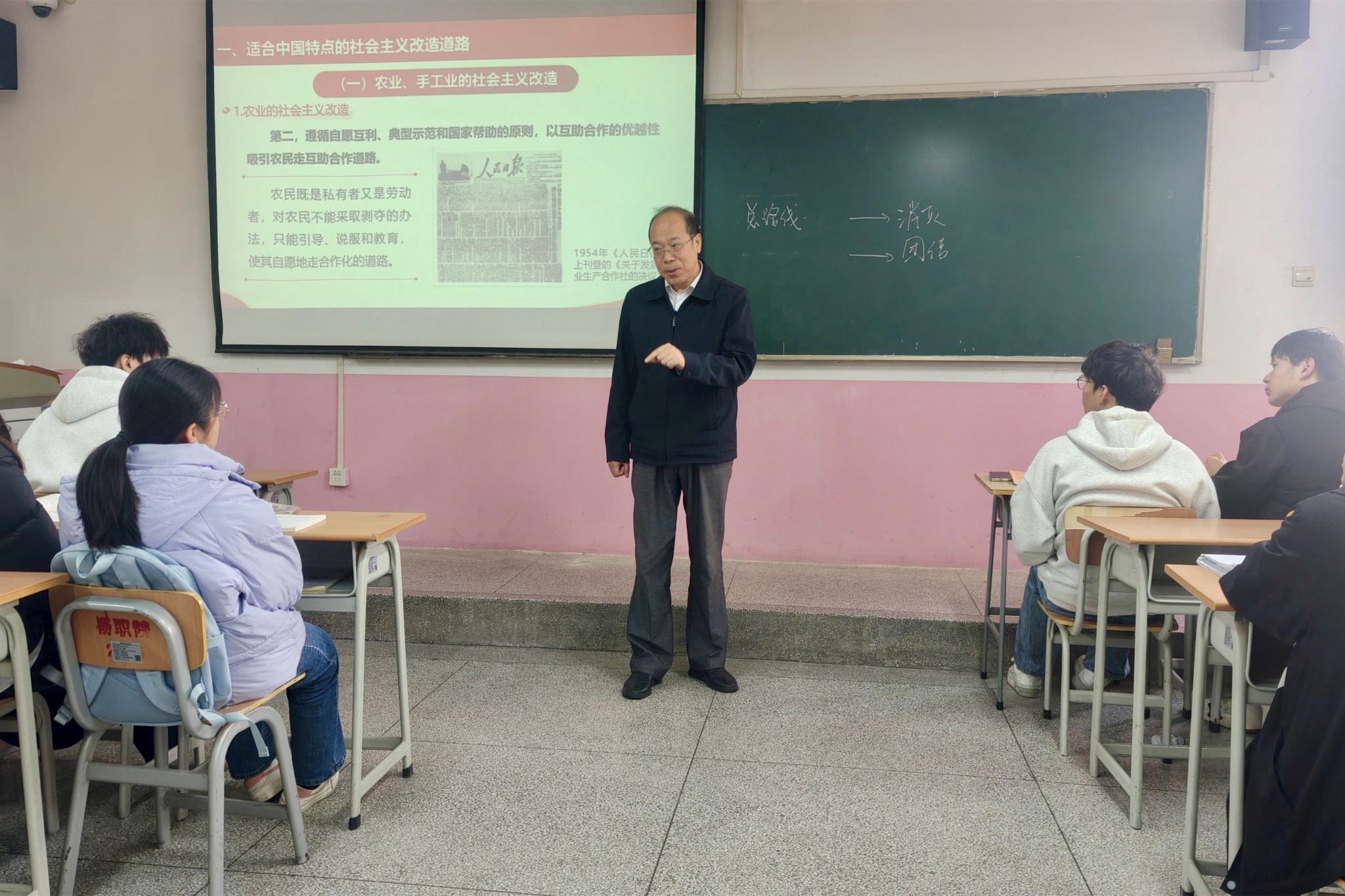 11月13日上午,校长仲伟周深入思政课堂,与建筑工程学院造价24178班学生共同听取了马克思主义学院教师薛敏讲授的《毛泽东思想和中国特色社会主义理论体系概论》课程,并指导调研思政课建设。