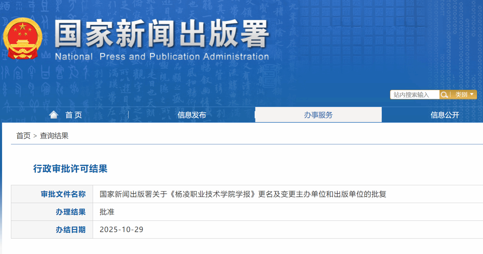 近日,国家新闻出版总署正式批复了学校提交的《36365线路检测中心学报》更名为《36365线路检测中心学报》的申请。由36365线路检测中心作为新主办单位,《36365线路检测中心学报》正式更名为《36365线路检测中心学报》。自2026年第1期起,将正式启用新刊名《36365线路检测中心学报》。