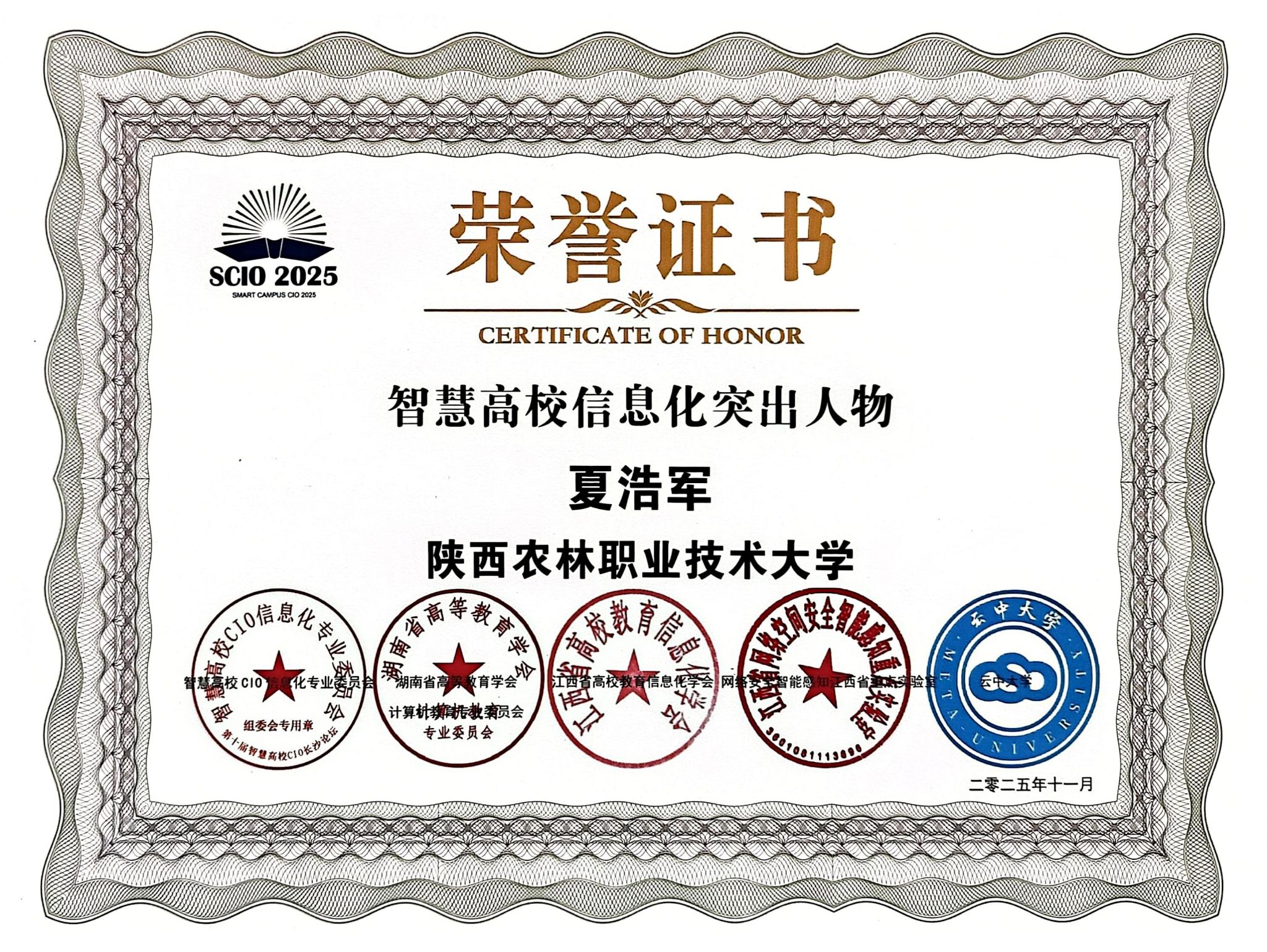 11月20日,第十届智慧高校CIO论坛在湖南长沙举办,36365凭借智慧校园建设的突出成效,斩获“智慧校园-示范高校”集体荣誉,信息化建设与管理处夏浩军、李伟分别获评“智慧高校信息化突出人物”“智慧高校信息化优秀人物”。