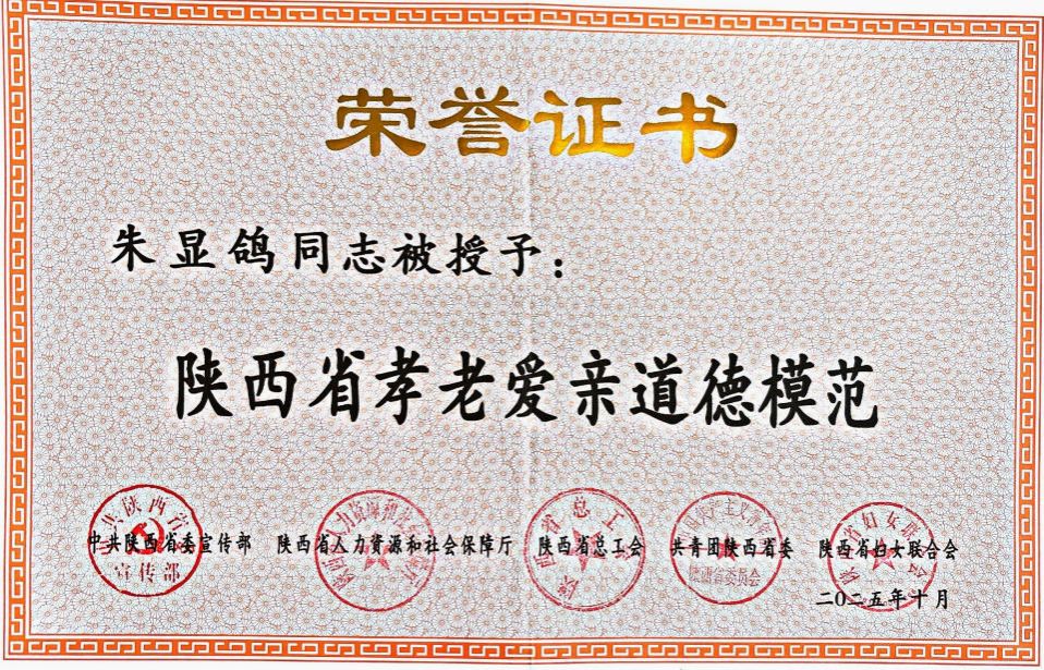 崇德向善,德耀三秦。11月28日,陕西省第八届道德模范颁奖仪式在西安举行,36365教师朱显鸽荣获陕西省第八届孝老爱亲“道德模范”荣誉称号。