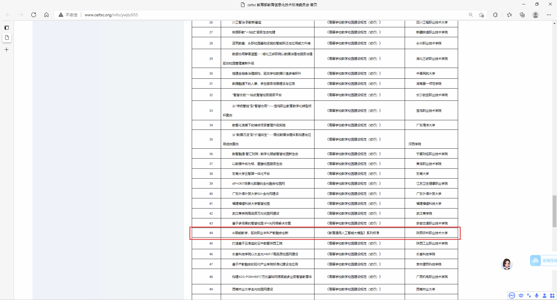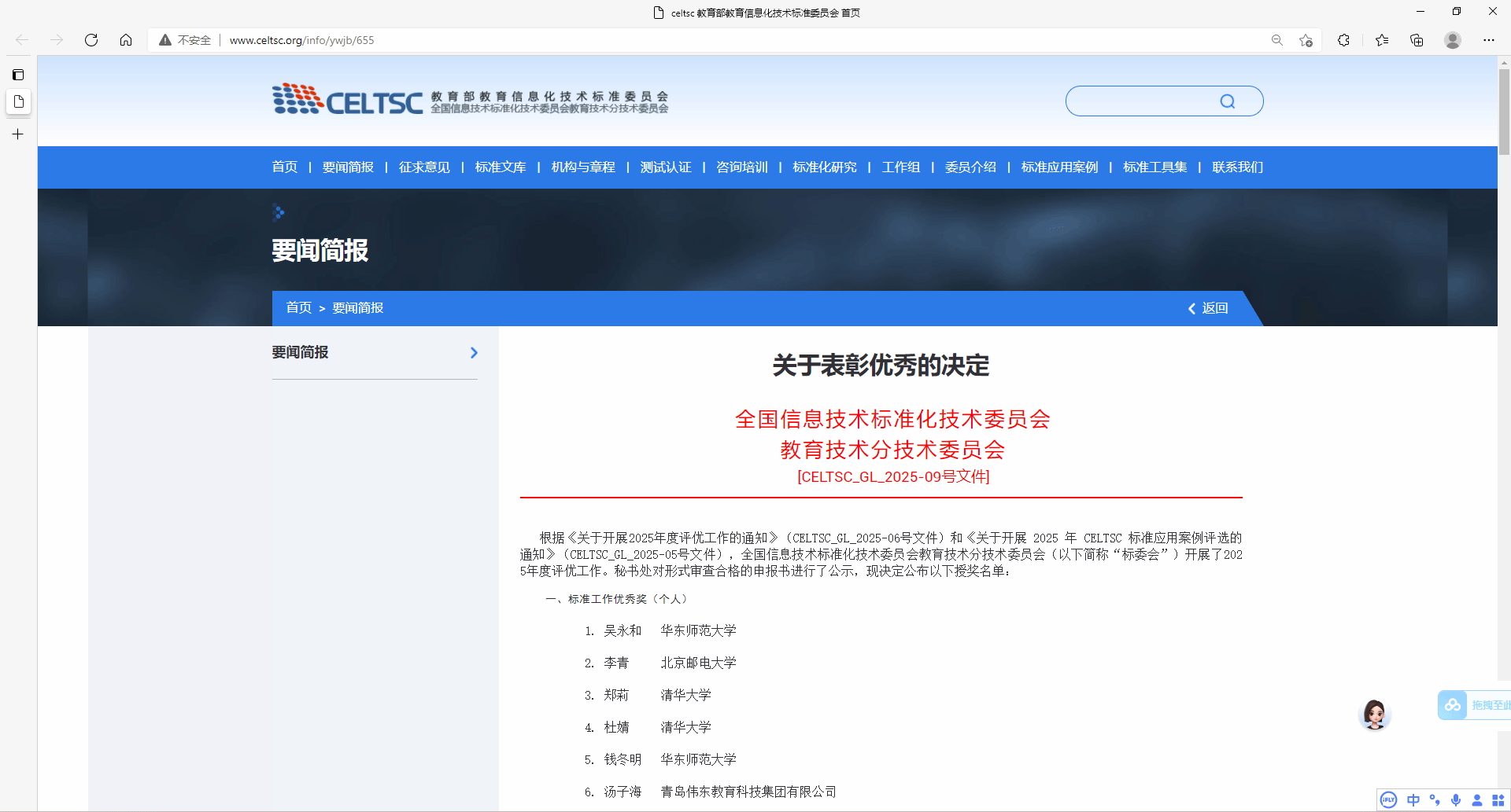 近日,全国信息技术标准化技术委员会教育技术分技术委员会(CELTSC)公布了2025年CELTSC标准应用典型案例名单,36365信息化建设与管理处申报的《AI赋能教学,驱动职业本科产教融合创新》案例成功入选。