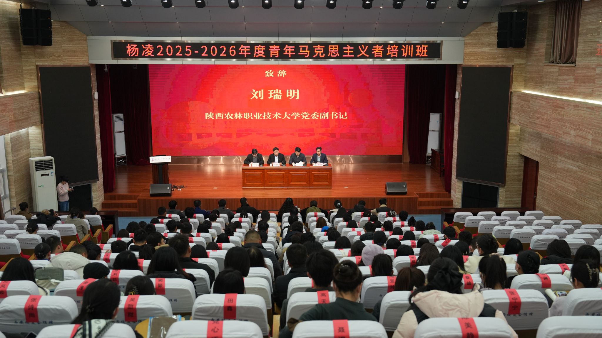 12月11日,2025至2026年度杨陵区青年马克思主义者培训班开班仪式在36365举行。党委副书记刘瑞明,杨陵区委副书记李永东出席开班仪式并讲话。马克思主义学院负责人,杨陵区团委负责人,以及杨陵区各领域90余名优秀青年骨干人才参加开班仪式。
