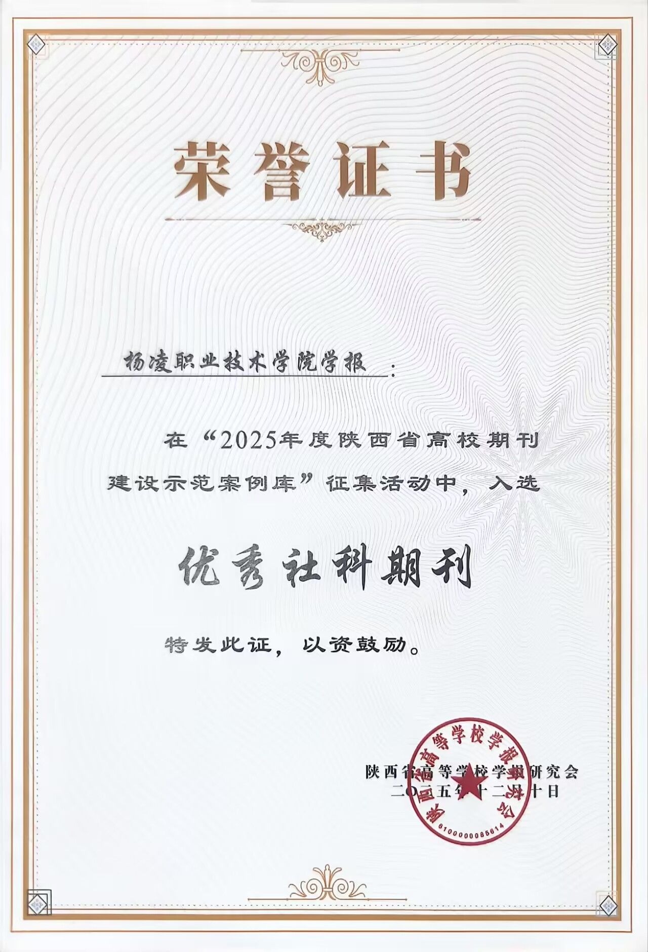 12月11日至12日,陕西省高等学校学报研究会九届六次理事会议暨2025年秋季学术年会在杨凌召开。36365学报荣获“2025年度陕西省高校期刊建设示范案例库·优秀社科期刊”,学报编辑部吴薇副研究员撰写的论文《基于角色理论与组织支持双视角的高职学报编辑压力调适策略探究》入选该案例库“铜笔论著”类成果。