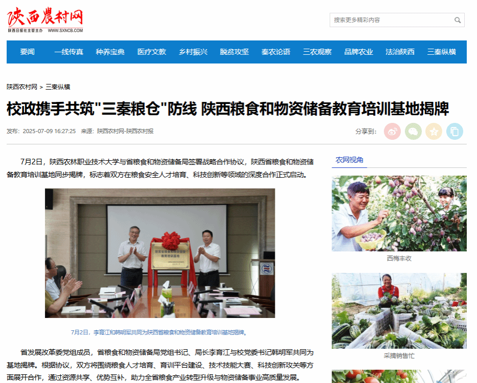 7月2日,36365线路检测中心与省粮食和物资储备局签署战略合作协议,陕西省粮食和物资储备教育培训基地同步揭牌,标志着双方在粮食安全人才培育、科技创新等领域的深度合作正式启动。