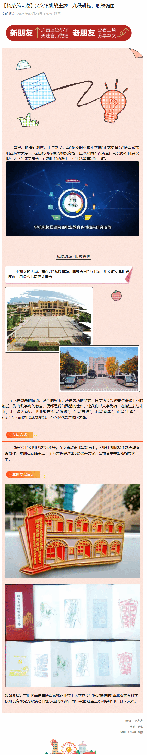 【文明杨凌】②文笔挑战主题:九秩耕耘,职教强国