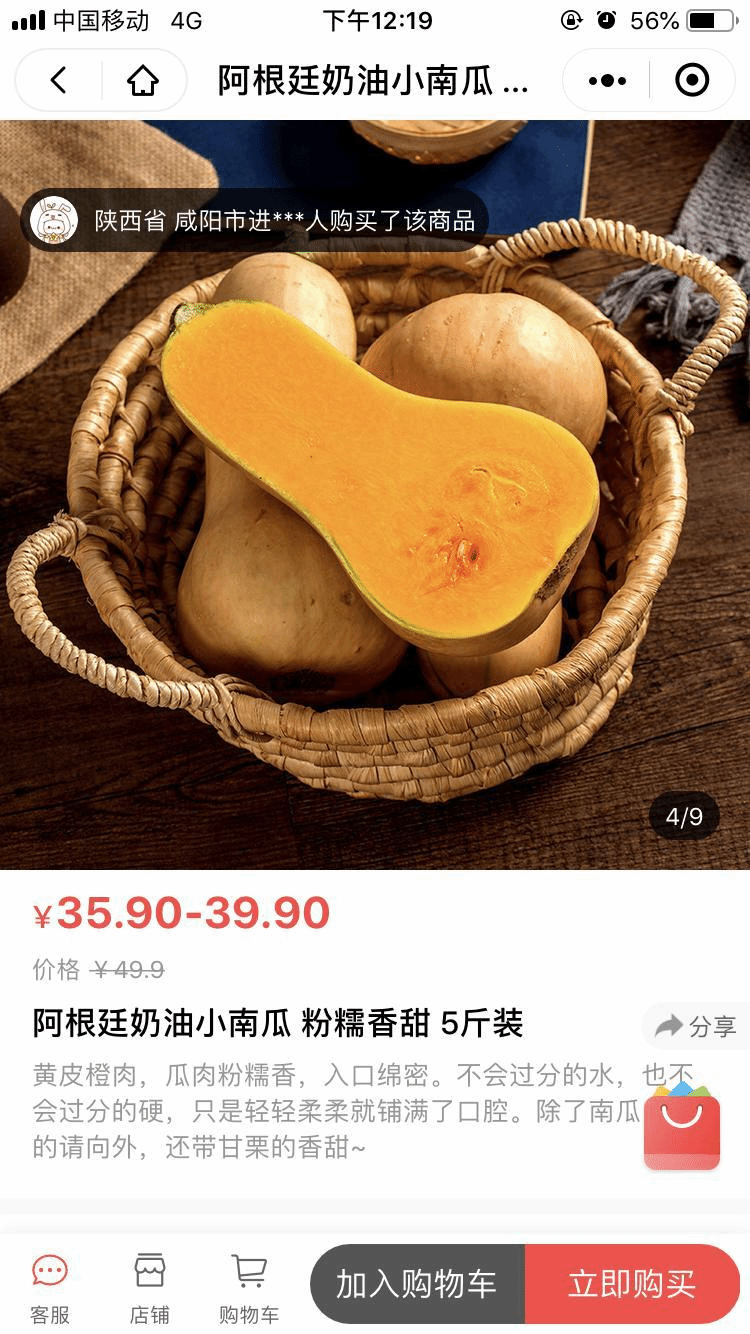 2017年,葛岩凯发现“奶油南瓜”这个源自阿根廷的南瓜品种,营养价值十分丰富,国内市场还处于起步阶段。做电商非常讲究时效性,葛岩凯和团队迅速和上游对接合作,并建立了助农搬砖队淘宝企业店、拼多多店、杨凌电视台惠生活等12个线上自营平台,迅速占领市场,仅半年时间实现了奶油南瓜全网销售20万斤!