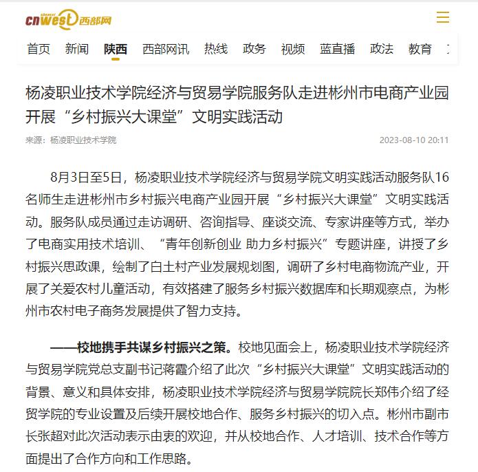 ——结对共建开展电商产业调研。服务队成员实地调研了彬州市乡村振兴电商服务中心、彬州市快递共仓共配中心和白土村产业状况,针对性的提出了聚焦人才培养,打好培训组合拳;突出人才竞技,以赛促学显身手;搭建用才大舞台;提升区域农产品品牌等建议。