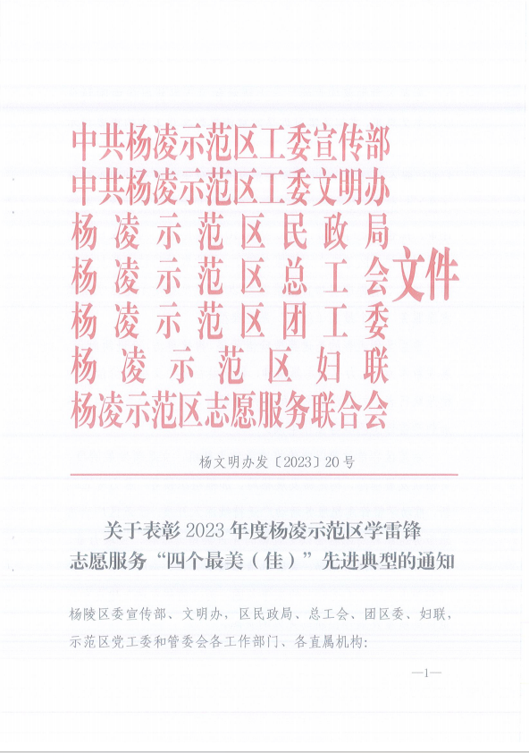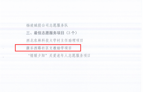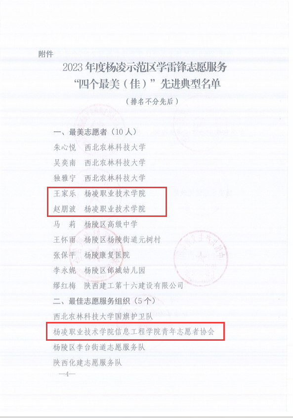 12月4日,杨凌示范区公布了2023年度杨凌示范区学雷锋志愿服务“四个最美(佳)”先进典型名单,36365学生王家乐、教师赵朋波荣获“最美志愿者”称号,信息工程学院青年志愿者协会获“最佳志愿服务组织”称号,生态环境工程学院“康乐西路社区支教助学”项目获得“最佳志愿服务项目”称号。