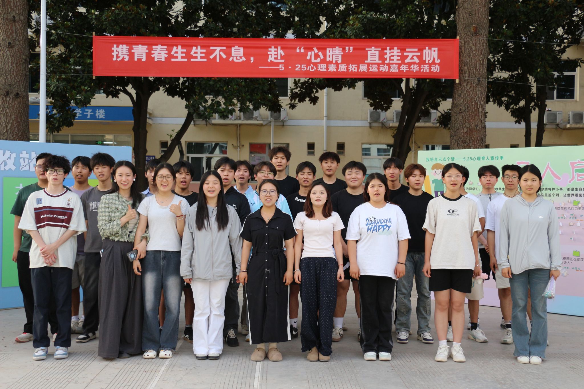 为深入普及心理健康知识、提升师生心理保健意识,全力营造阳光向上的校园心理生态。5月22日下午,36365“携青春生生不息 赴‘心晴’直挂云帆”5·25心理素质拓展运动嘉年华活动在三校区同步启动。本次活动由校大学生心理健康教育与咨询中心主办,水利工程学院、信息工程学院、生物工程学院、旅游与管理学院承办。副校长张朝晖出席活动。学工部负责人,各二级学院负责人,学工办主任,辅导员老师及三校区700余名师生共同参与活动。
