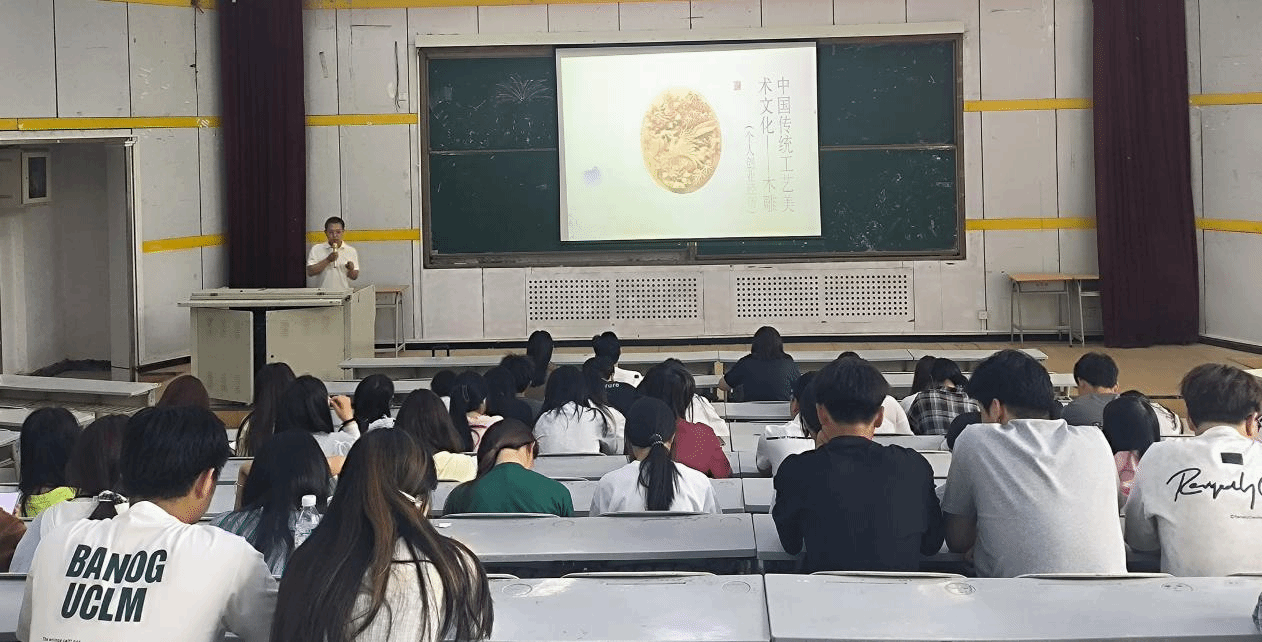 报告会上,吴文军深情回顾了自己从职业院校学生起步,研习木雕技艺、博采众家之长,最终成为木雕技能大师的成长历程,并分享了自身通过阅读积累创作素材、提升艺术素养的宝贵经验。他还结合作品影像资料,生动诠释了木雕艺术的文化内涵,鼓励在场学生珍惜学习机会、精进专业技能、做好人生规划。